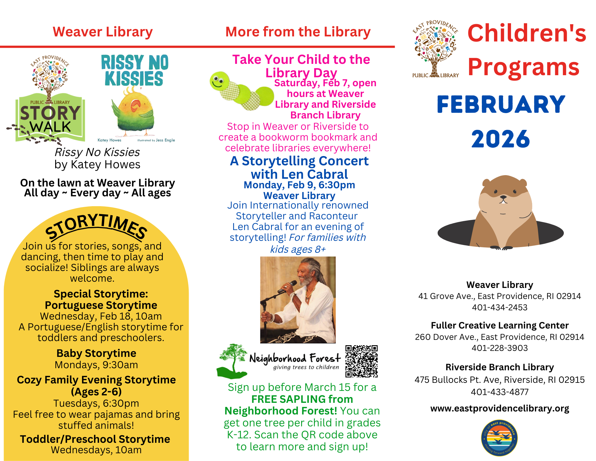 See our monthly flyer below. All programs are 'drop-in' unless otherwise noted. Please contact the Children's Department with any questions.